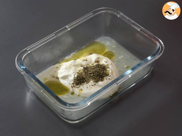 W hermetycznym pojemniku lub torebce do zamrażania umieść oliwę z oliwek, jogurt grecki, ocet jabłkowy, sok z cytryny, czosnek, sól, pieprz i oregano.