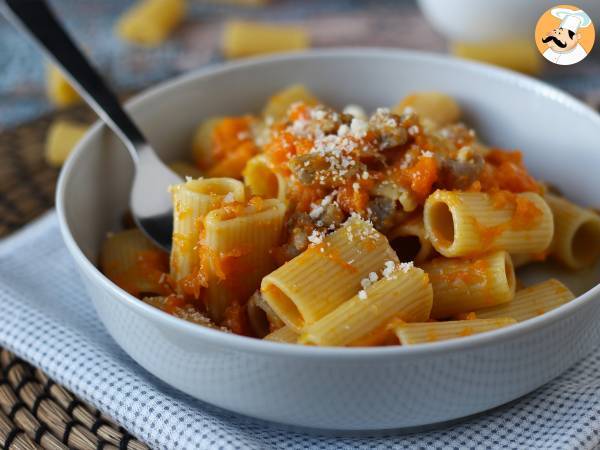 Typowe włoskie pierwsze danie, idealne na jesień. Słodki smak dyni doskonale komponuje się z wyrazistym smakiem pokruszonej kiełbasy, dając w efekcie zrównoważone, przepyszne danie, które z niecierpliwością będziesz chciał ponownie przygotować. Przepis na makaron z dynią i kiełbasą jest bardzo prosty i można go zaproponować rodzinie na codzienny obiad lub gościom na kolację. Wyjaśniamy procedurę krok po kroku, więc wypróbuj to smaczne jesienne danie z makaronem w domu, a jeśli chcesz, aby było jeszcze bardziej kremowe, dodaj trochę śmietanki do gotowania.