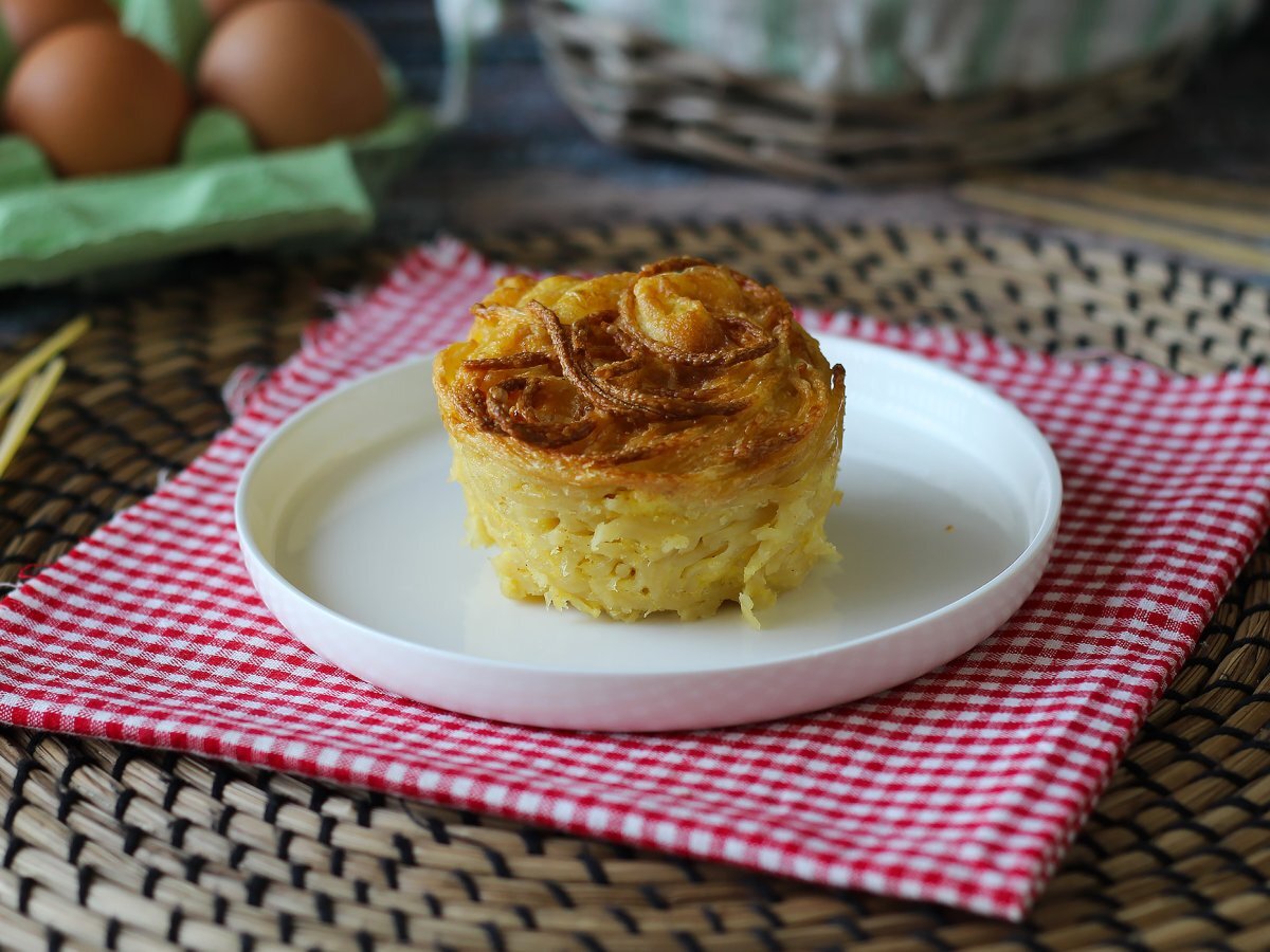 Frittata z makaronem to włoskie danie, które nigdy nie wychodzi z mody. Zwykle przygotowuje się ją na patelni, ale dziś proponujemy naszą wersję przygotowaną we frytkownicy powietrznej: lżejszą, ale o takiej samej konsystencji jak tradycyjny przepis. Chrupiąca na powierzchni i miękka w środku, spaghetti frittata we frytkownicy powietrznej stanie się daniem, które często będziesz proponować na szybki i smaczny obiad, ale jest to również świetny pomysł na danie piknikowe. Przygotowanie spaghetti frittata we frytkownicy powietrznej jest dziecinnie proste. Postępuj zgodnie z procedurą krok po kroku i wybierz, czy chcesz ją podawać na ciepło, ciepło czy na zimno.