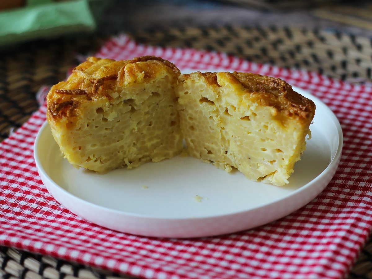 Nałóż na talerz i podawaj. Omlet z makaronem ugotowany we frytkownicy powietrznej jest gotowy!